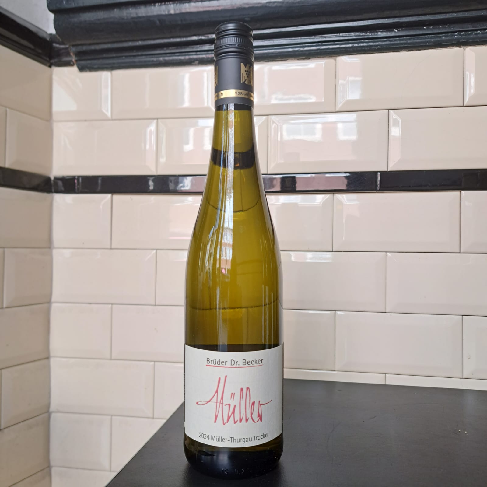 Brüder Dr. Becker is een biologisch wijnbedrijf in Dienheim en bestaat al 5 generaties. Tegenwoordig wordt het domein geleid door de familie Pfeffer-Müller en beslaat het een oppervlakte van 11 ha. De wijn komt van de wijngaarden Dienheimer Tafelstein die zich uitstrekken over de terrassen langs de Rijn. Hier verbouwen ze grotendeels Riesling en kleinere gaarden aan Weissburgunder, Grauburgunder, Sylvaner, Schreube en Spätburgunder. En dus ook.. Müller-Thurgau!